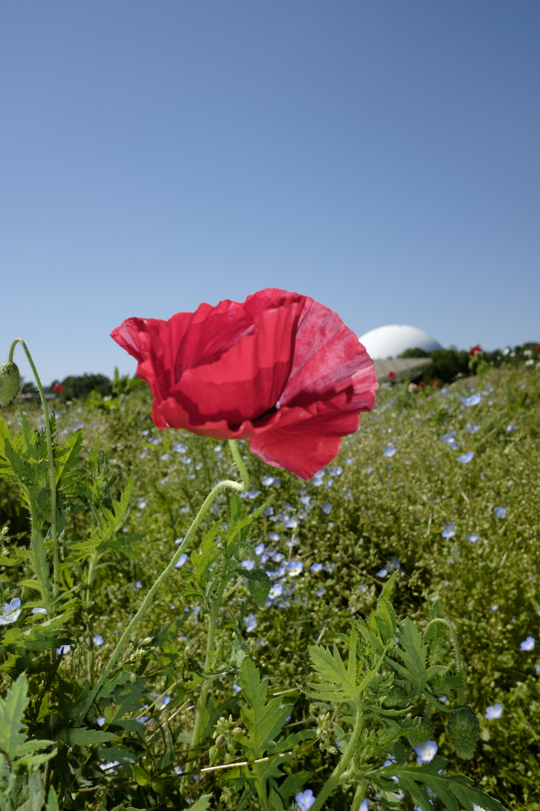 A hill, somewhere beautiful and remote Green grass, flowers A gentle breeze In the distance, a body of water TINY TIM, the musician not the Dickens character, stands at the top of the hill, smiling, ukulele in hand He is about to play when he is distracted by something falling